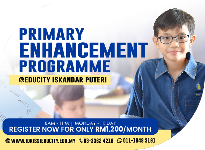 IDRISSI International School EduCity, Iskandar Puteri is now open, and it is time to give your child a head start in the primary school’s journey starting from January 2022! This means they will no longer have to wait for March or September to start schooling. This programme is specially designed for children to polish basic